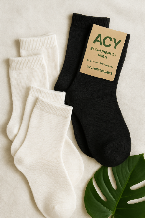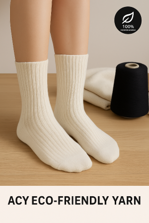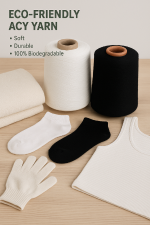 ACY (Air Covered Yarn) is an environmentally friendly air-covered yarn made of 50% cotton and 50% polyester, designed for knitted socks and other textiles. The product has high elasticity, soft feel and good breathability, suitable for the production of high-quality socks, underwear, sportswear and other textiles. Its white and black versions can meet different design needs.