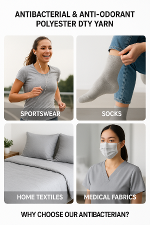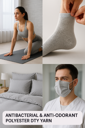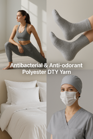 Our Antibacterial and Anti-odorant Polyester DTY Yarn is engineered for high-performance textiles that resist bacterial growth and eliminate unpleasant odors. Ideal for sportswear, socks, underwear, home textiles, and medical fabrics, this yarn combines durability with advanced hygiene technology.